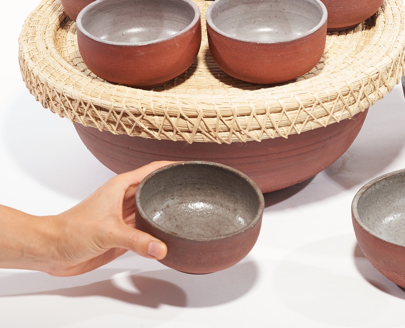 Chaque pièce est tournée à la main sur un tour de potier, selon une technique exigeante qui demande des années de maîtrise. Le processus commence par le centrage de la boule d’argile, puis le perçage et le modelage des parois. Après séchage, la pièce est retournée pour affiner sa base et ses lignes — un travail précis, subtil, et profondément artisanal.